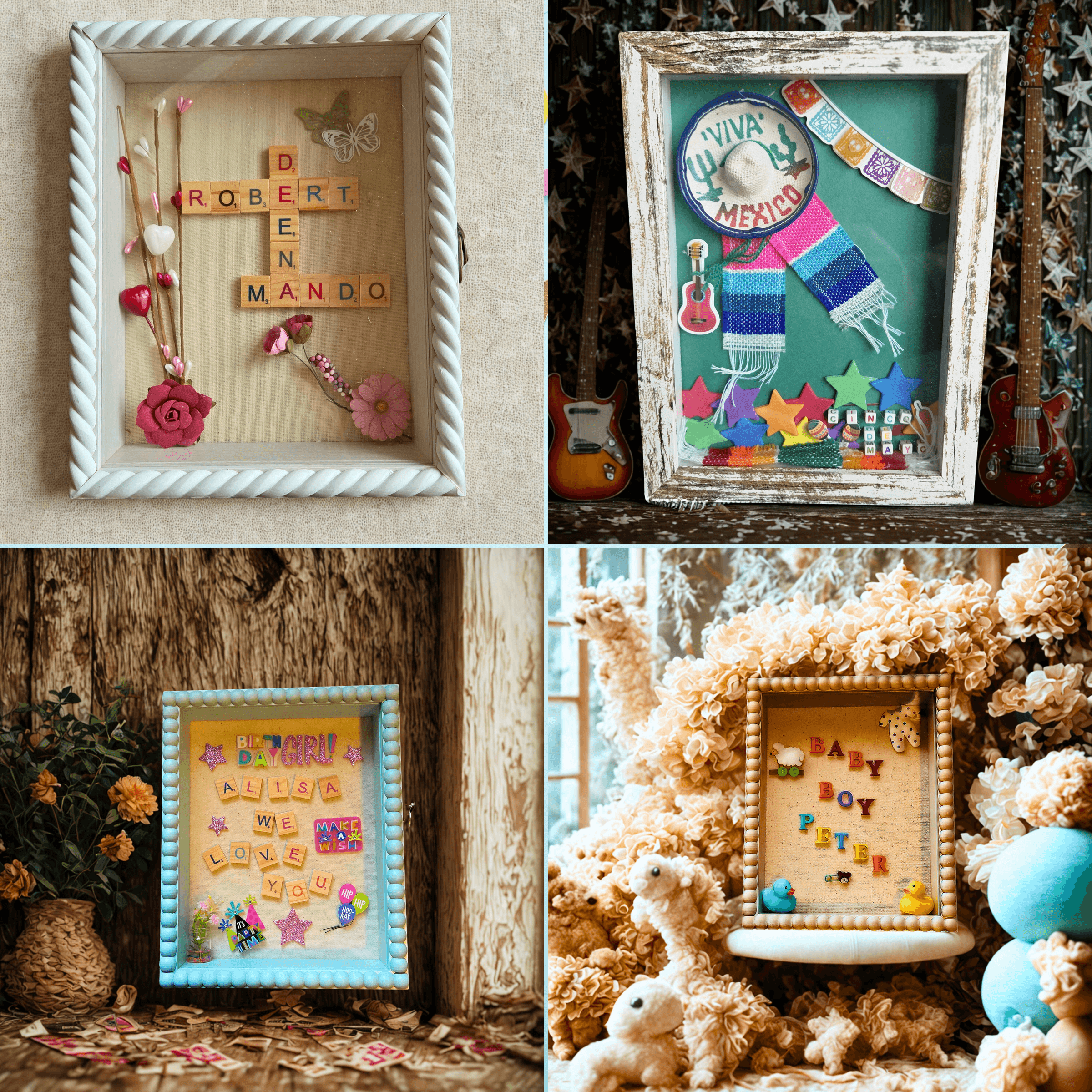 I enjoy making favors for baby and bridal showers and/or weddings, Christmas gifts and birthdays. My friends and family supported me in opening up a shop here on Etsy. Personalized shadow boxes can be added to special moments in that person's life or for yourself.